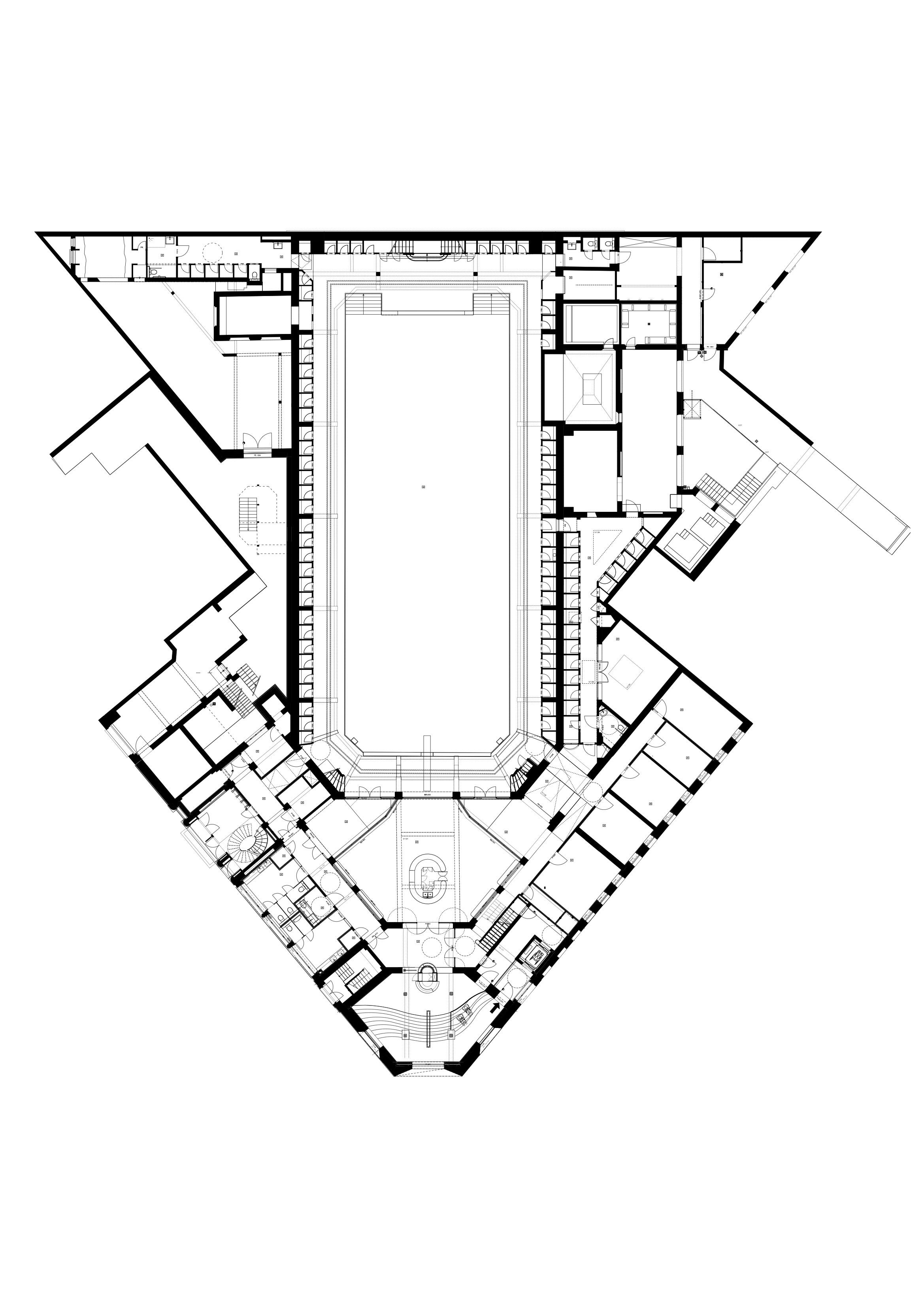 La piscine communale Victor Boin est construite en 1905 selon des plans des architectes Cooreman et Rau. Son profond remaniement dans un style Art Deco entre 1938 et 1940 par l'architecte-inspecteur communal Ingelbrechten en fait l’un des derniers témoins bruxellois du patrimoine architectural des bains et piscines de l’entre-deux-guerres. D'une part, le projet s'attache à mettre en valeur les caractéristiques historiques et à respecter l’atmosphère du lieu. D'autre part, le bâtiment doit être adapté aux normes et exigences actuelles. Les priorités sont donc de faciliter l’utilisation pour le public et le personnel, d'améliorer la sécurité et l’accès aux personnes à mobilité réduite mais également le confort et le bien-être, dans des espaces favorisant les relations sociales.