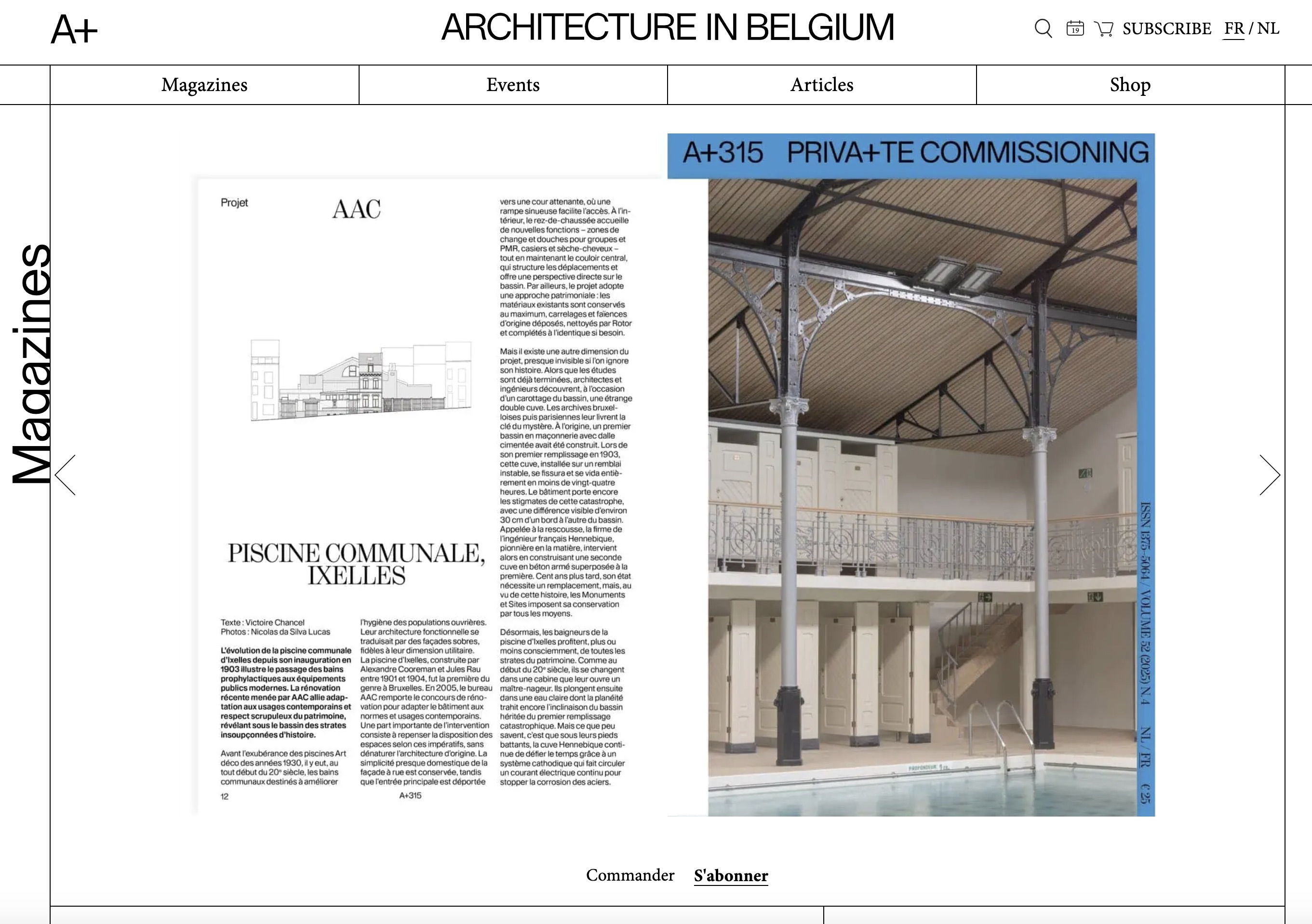 Our swimming pool restauration project "Piscine d'Ixelles" published in A+315 december 2025