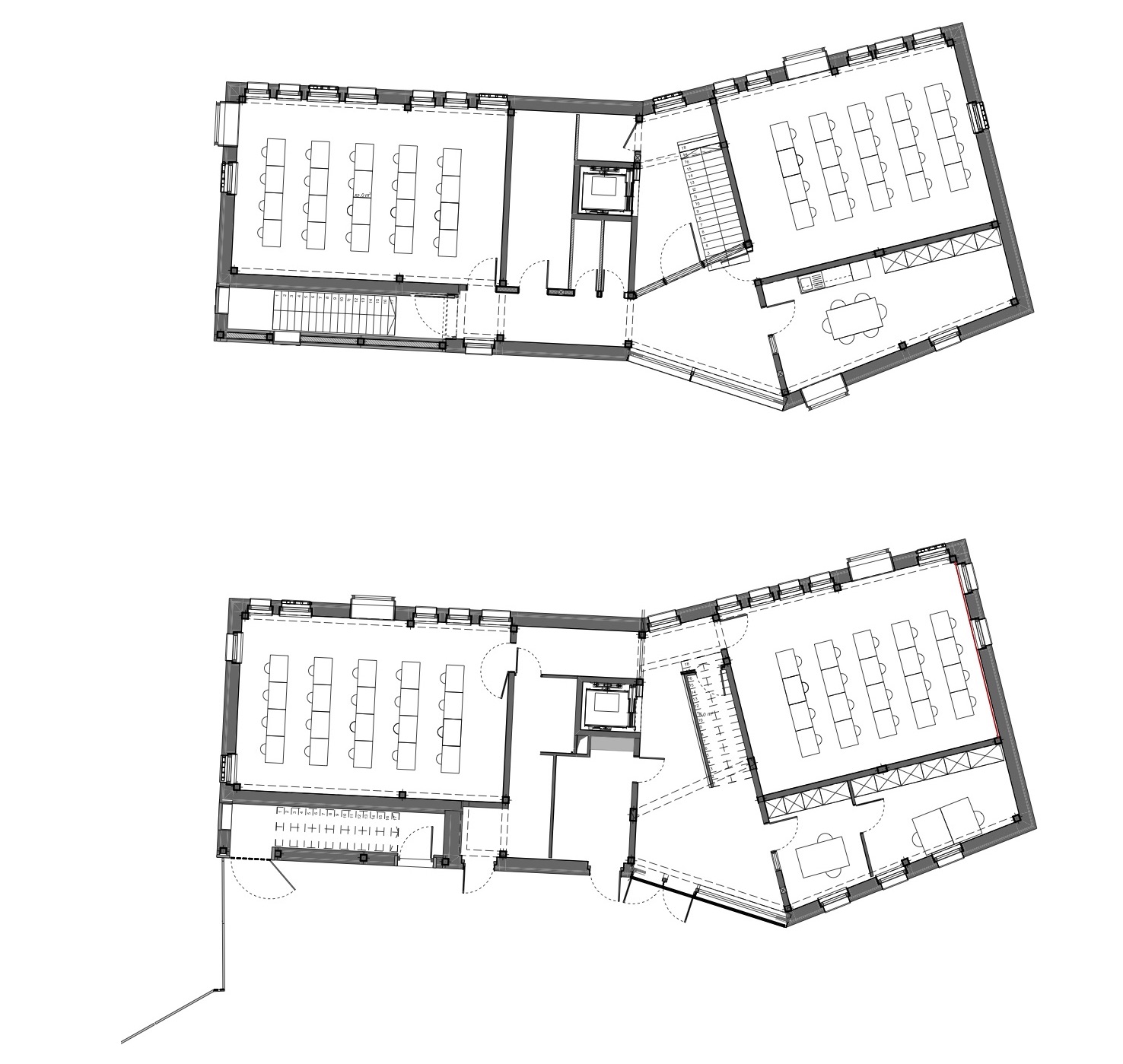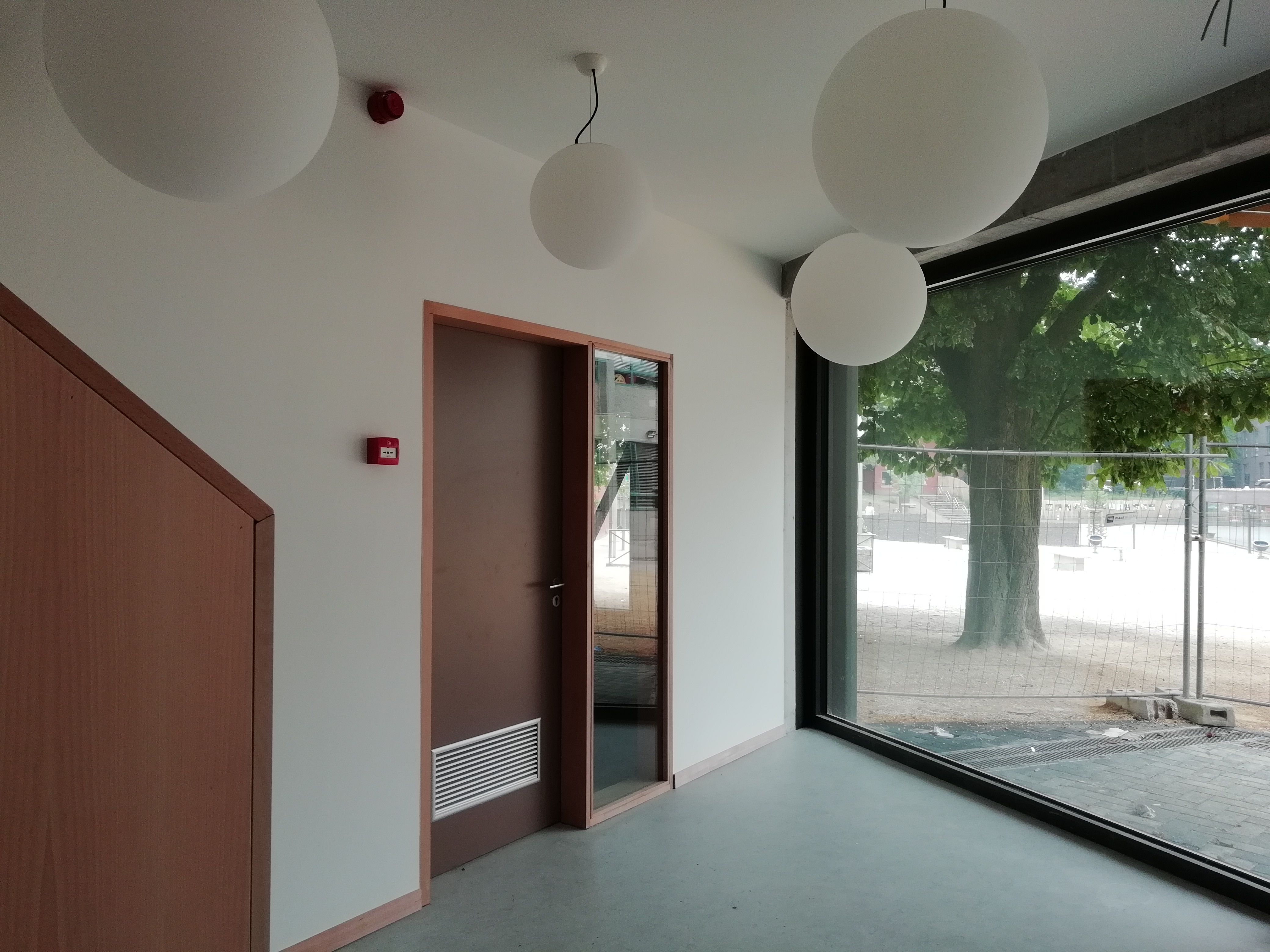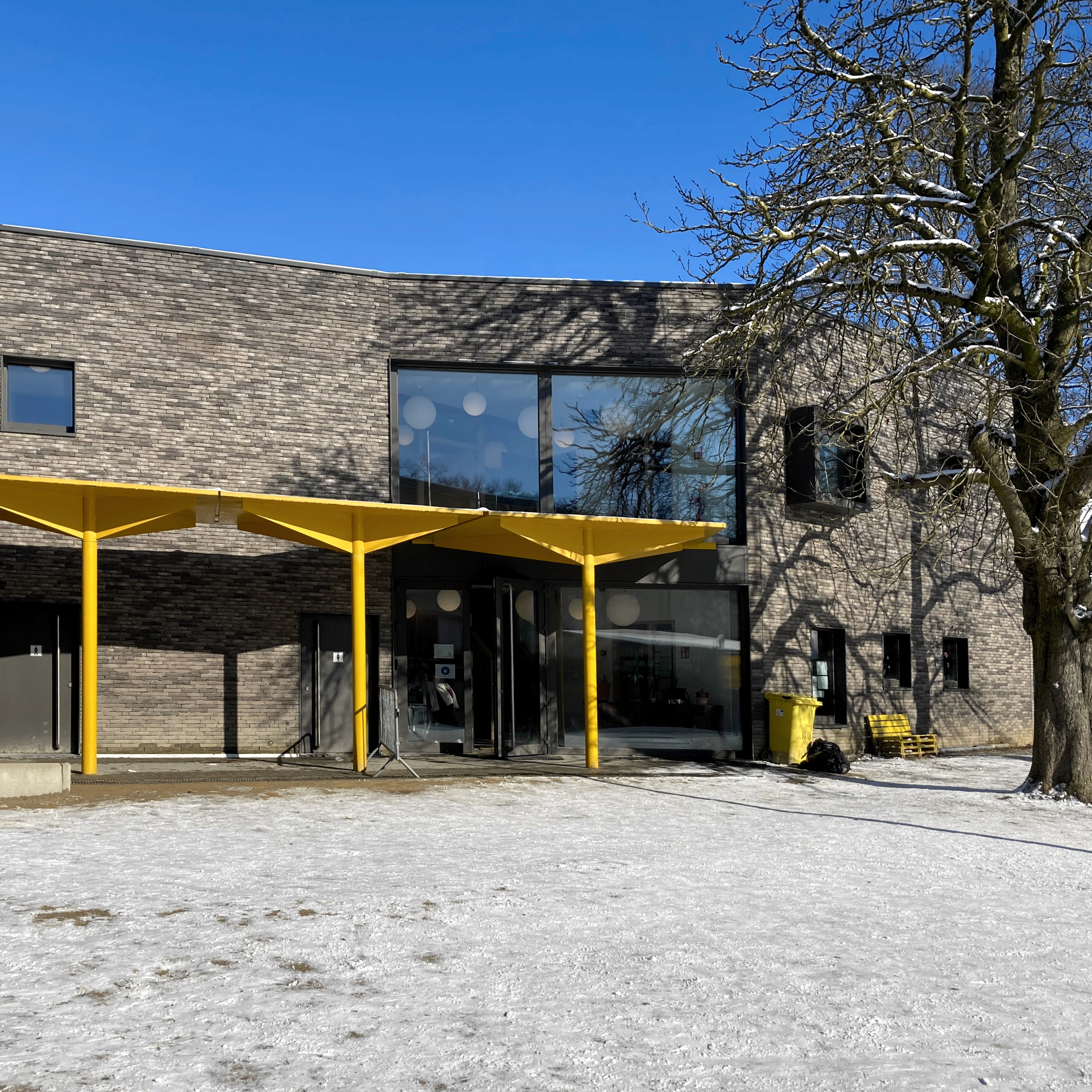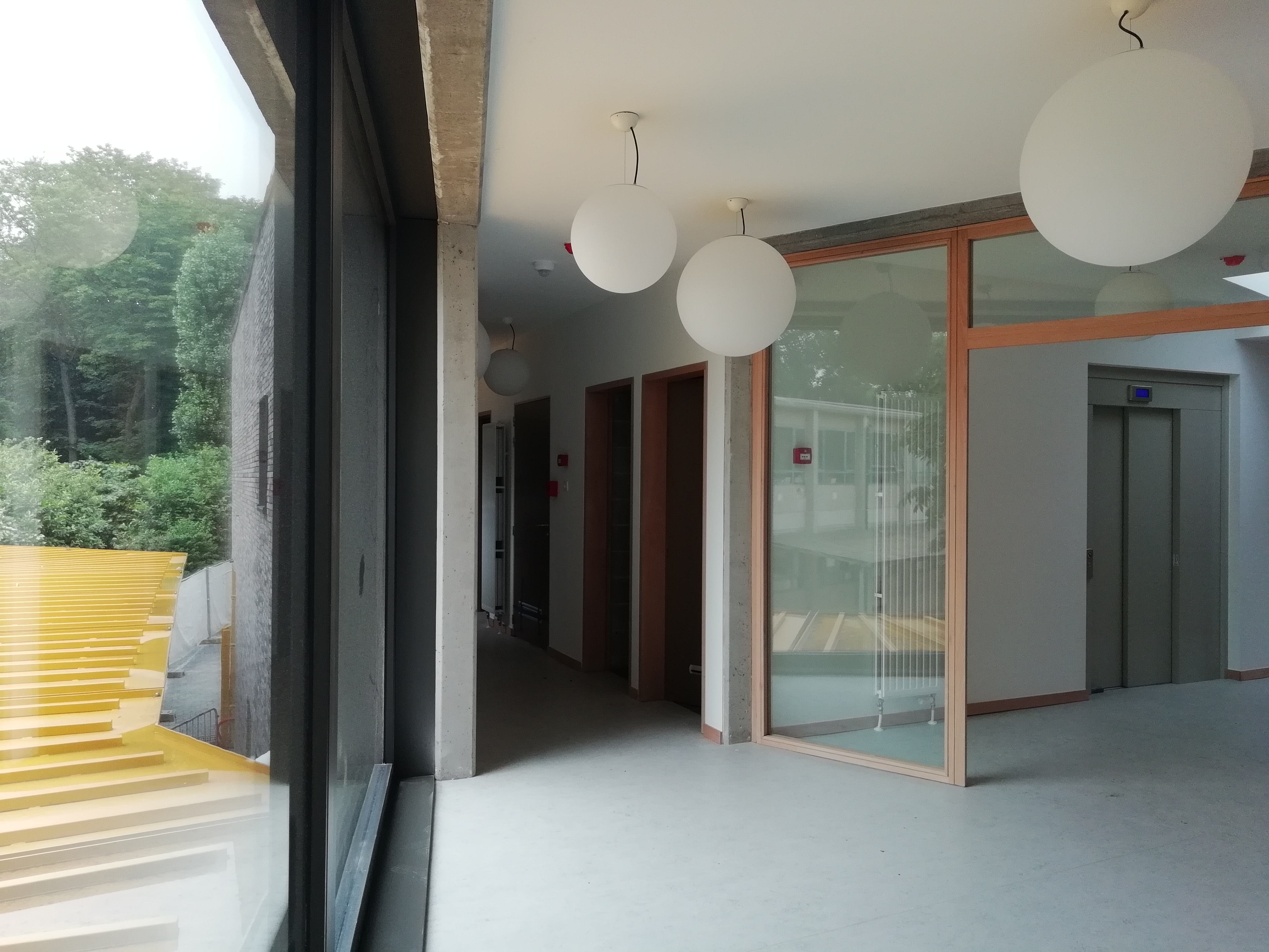 De voornaamste zorg in het ontwerp is het kind. Het nieuwe schoolgebouw wil ruimte geven aan de ontwikkeling van het kind en haar activiteiten. Ze moet ook een kwalitatieve verbinding toelaten tussen het kind en de volwassene. De configuratie in de architectuur is simpel en duidelijk leesbaar waardoor het kind zich beschermd voelt. De klassen, gelegen aan de uiteinden van het gebouw, krijgen een oriëntatie toegewezen waarbij een indirect noorderlicht binnenvalt. De boomrijke zone aan de ingang tempert het straatlawaai afkomstig van de drukke laan. De boomwand creëert hierbij een doorzeefd zicht tussen de kinderen en de publieke ruimte. In plan bevinden de klassen zich boven elkaar, in coherentie met hun functies en zones. De circulatieruimtes blijven niet enkel functioneel; het zijn genereuze ruimtes die de kinderen zichzelf kunnen toe-eigenen. De gangen zijn haast onbestaand om plaats te maken voor ruimtes die een brede en polyvalente circulatiezone toelaten; Het zijn gedeelde zones met ademruimte voor de aanpalende klassen.