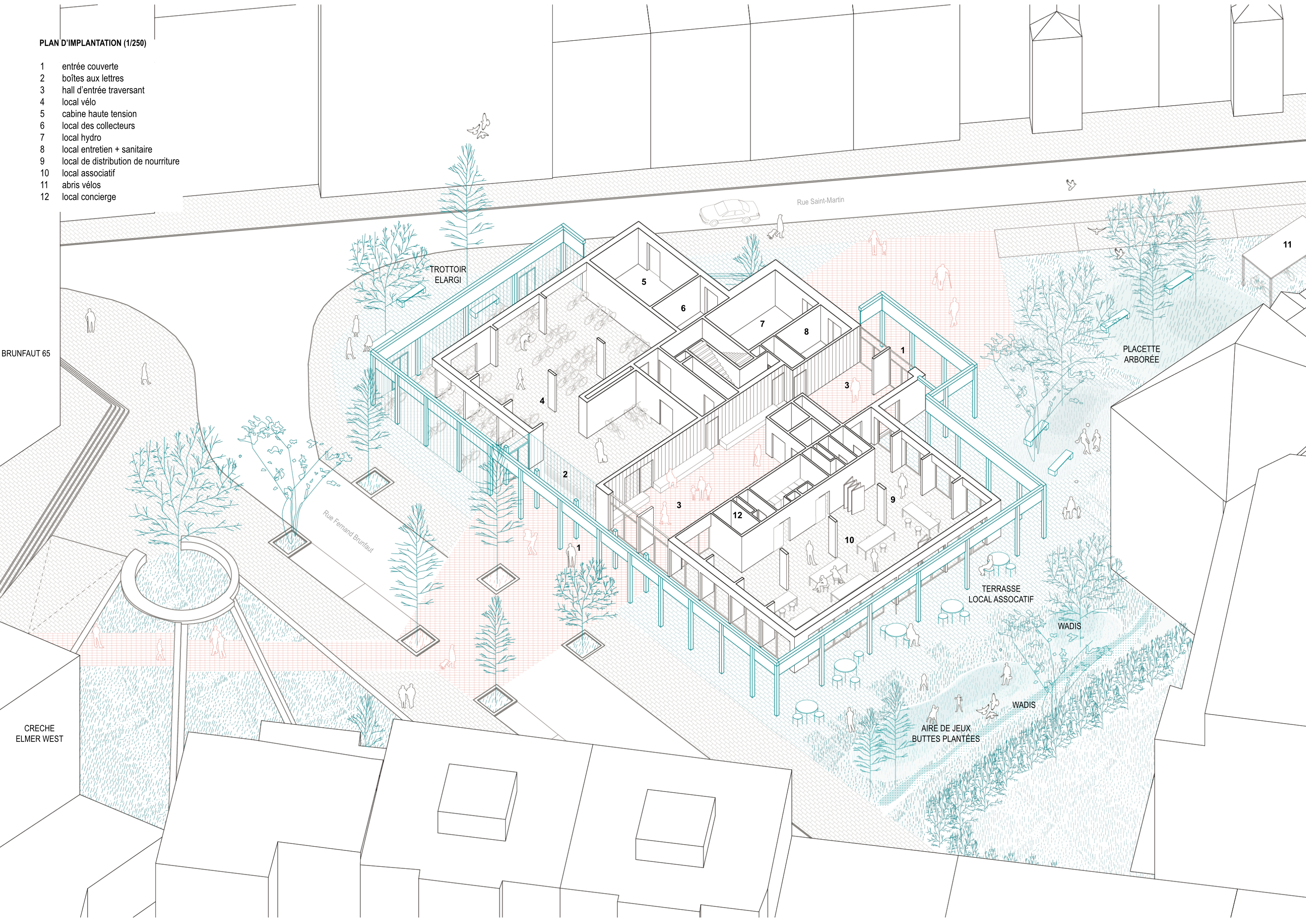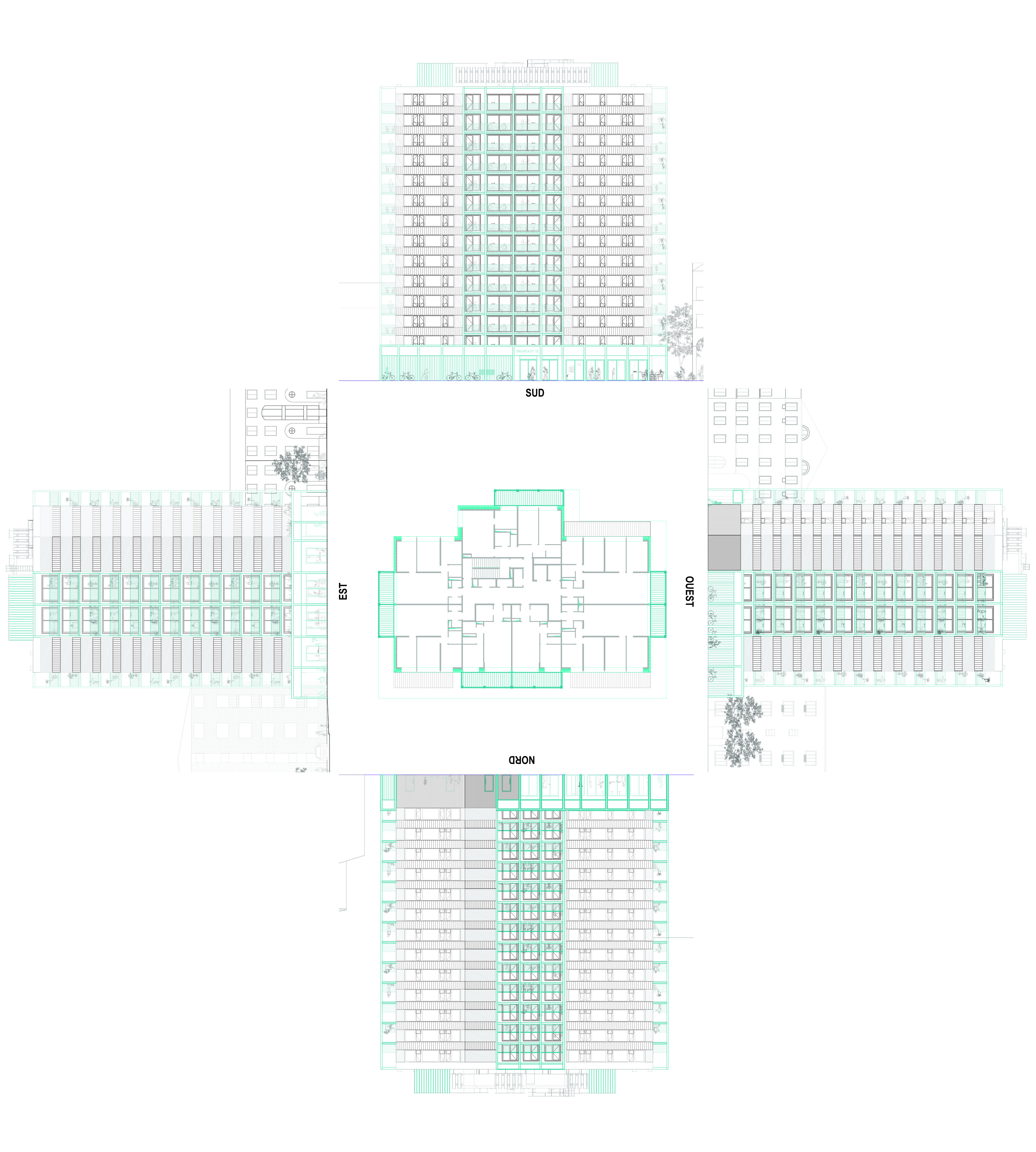 De toren 'Brunfaut 35' werd begin jaren 1970 gebouwd in de kanaalzone van Brussel. Het doel van het project is om de levenskwaliteit van de huurders te verbeteren door het toevoegen van royale houten terrassen en een nieuwe huid die het thermisch comfort en de ruimtelijke kwaliteit van de accommodatie zal verbeteren. Het project beantwoordt aan de wens om bijna alle bouwelementen te behouden, met uitzondering van de ramen. Zo worden interessante kenmerken van het bestaande gebouw aangehouden, zoals o.a. het horizontale ritme van de gevel. Deze zal behouden worden door het gebruiken gerecupereerde golfplaten, die dienst doen als borstwering onder de bandramen. De begane grond wordt getransformeerd met de creatie van een overdekte plint die open is naar de buurt.