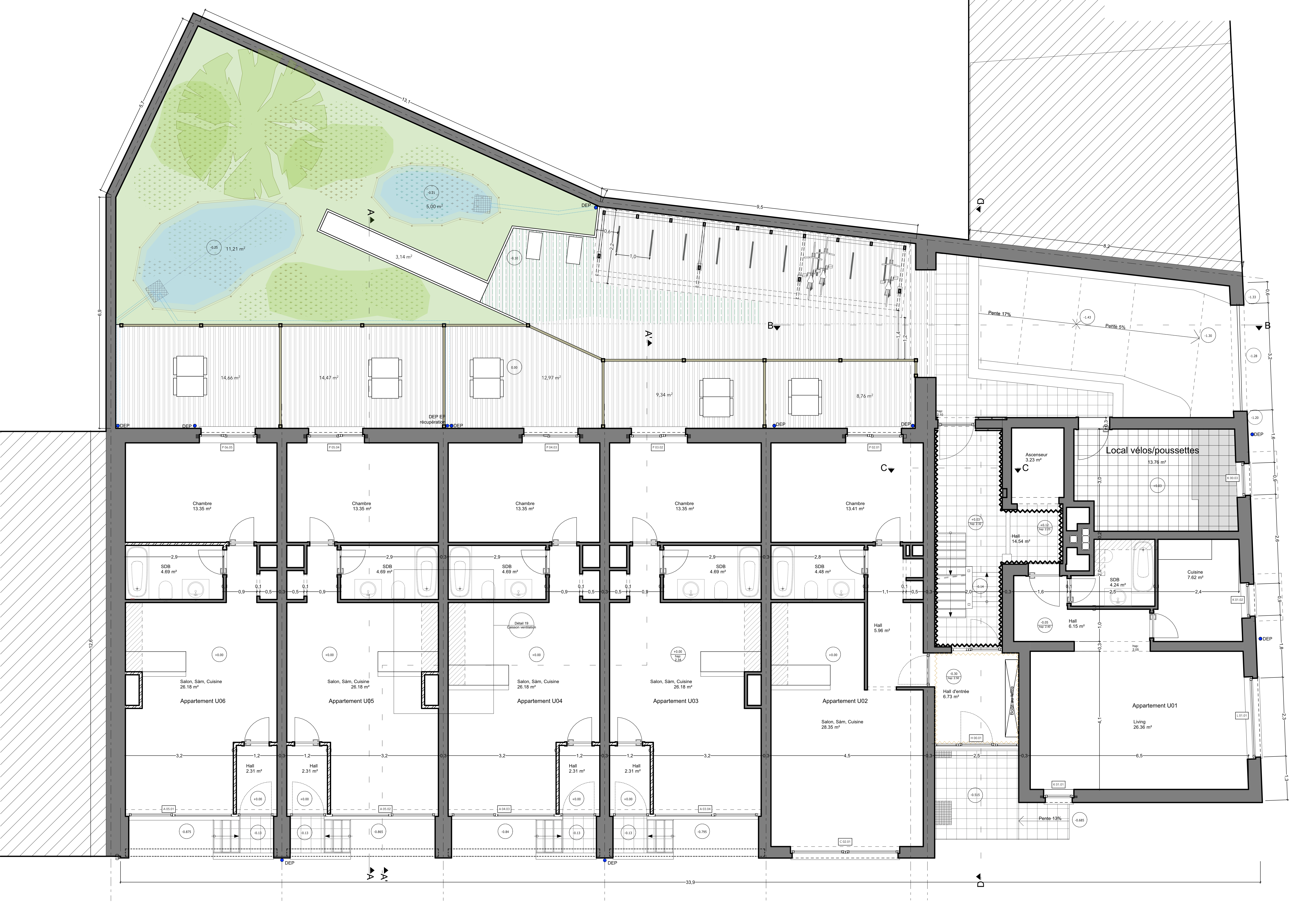 Het hoekgebouw aan de Méridienstraat, gebouwd in 1987, omvat 29 woningen. Het renovatieproject combineert een langetermijnvisie op de energie-uitdagingen met het verbeteren van het comfort van de bewoners (warmte en hygiënische ventilatie), samen met de noodzakelijke herstel- en aanpassingswerken om het gebouw aan de huidige normen te laten voldoen.